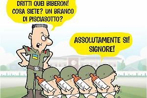 L’esercito ucraino sembra non avere più un numero sufficiente di soldati per fronteggiare l’avanzata russa e, di conseguenza, ha abbassato l’età per il reclutamento. Speriamo che la guerra finisca al più presto, prima che si debba ricorrere ai soldati presenti nella vignetta.