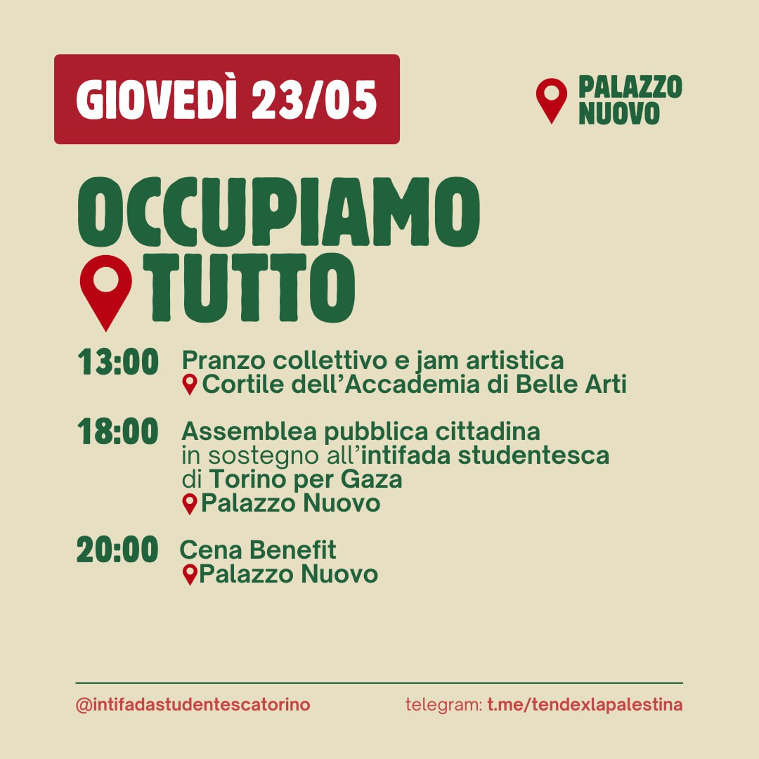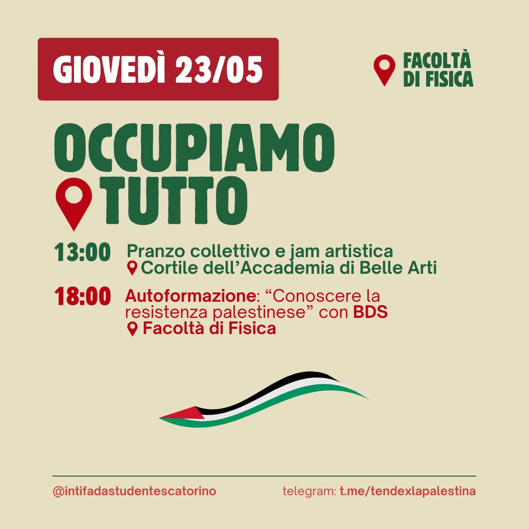 In occasione di questa giornata particolare il programma di oggi degli studenti occupanti è molto ricco. Tra pranzi collettivi, assemblee e momenti di formazione, l’occupazione non si ferma a grido di “occupiamo tutto” promuovendo una mobilitazione per la pace che diventa un imperativo civico. Di seguito alcune immagini con illustrate le attività della giornata.