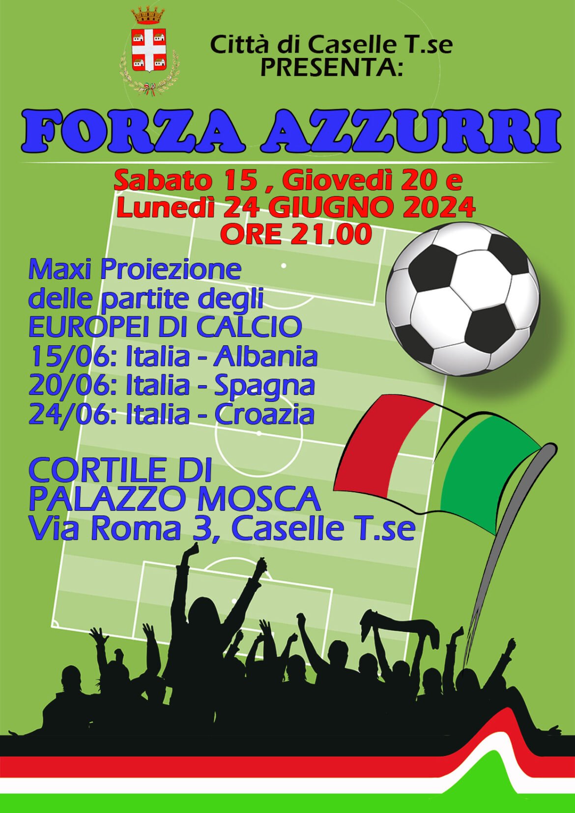 bulletin istituzionaleCaselle Notizie Proiezione partite calcio Europei – Germania 2024 by 11 Giugno 2024 written by 11 Giugno 2024 171 Read More 0 comment 0 FacebookTwitterPinterestEmail previous post ‼ Ancora posti disponibili ‼ CAMPO SCUOLA ANCH’IO SONO LA PROTEZIONE CIVILE 2… next post Ambiente, studio: i bambini italiani soffrono di ecoansia Related Articles Disposizione vendite di fine stagione 2026 21 Novembre 2025 Agenzia Sociale per la Locazione (ASLO) 18 Novembre 2025 X edizione del Premio Strega Ragazze e Ragazzi,... 17 Novembre 2025 Avviso di ripristino del funzionamento della pesa pubblica 15 Novembre 2025 Regno di Danimarca. Elezioni Comunali e Regionali di... 12 Novembre 2025 Repubblica dell’Ecuador. Elezioni Referendarie e della Consultazione Popolare... 12 Novembre 2025 Diritto al testamento biologico (DAT) Legge 219/2018 –... 10 Novembre 2025 Manifestazione di interessa per allestimento rotatorie comunali 4 Novembre 2025 Settimana Nazionale Nati per Leggere. In biblioteca due... 3 Novembre 2025 Carta dedicata a te anno 2025 31 Ottobre 2025