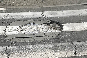 La voragine minaccia la sicurezza di ciclisti e pedoni in Barriera di Milano