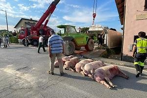 L’autista ha perso il controllo del mezzo. Per molti animali non c’è stato nulla da fare