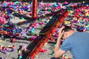 Il giovane è stato colpito da da un tubo sparacoriandoli ed è finito in ospedale