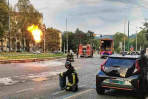 Operazione di sicurezza in corso Regina Margherita. Attraverso l’uso di una torcia, il gas liquefatto è stato combusto in sicurezza