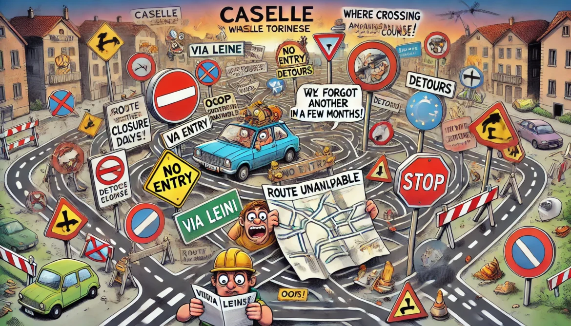 Ma il vero spettacolo si è svolto su via Leinì, dove un cantiere si è impossessato della carreggiata con un calendario di chiusure che sembra progettato per mettere alla prova la pazienza degli automobilisti. Un giorno sì, un giorno no, la strada chiude e riapre a fasce orarie che sembrano uscite da un puzzle logico. E siccome dimenticare una data è un attimo, ecco spuntare l’ordinanza integrativa per aggiungere un altro giorno di chiusura. Perché, si sa, meglio tardi che mai​​.