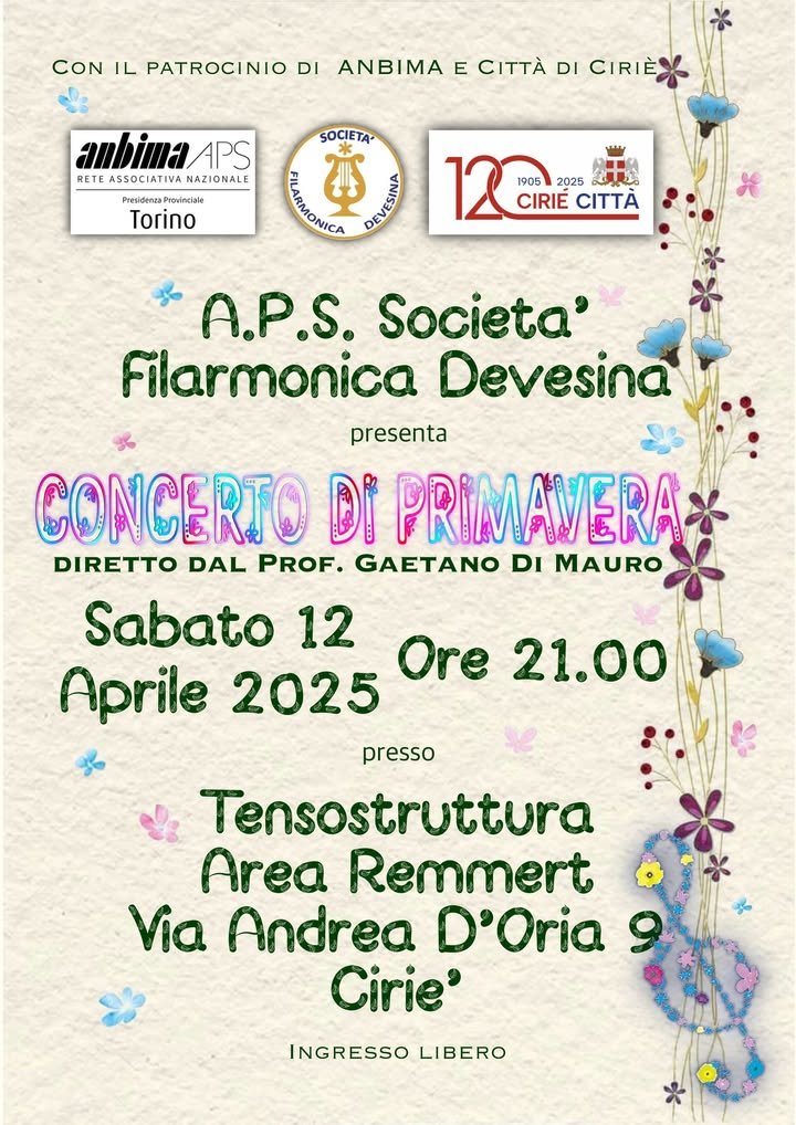 🌷🌺🎼 Ricordiamo che sarà ospitato dalla Tensostruttura di Area Remnmert il Concerto di Primavera della Società Filarmonica Devesina domani, sabato 12 aprile, alle ore 21.00.