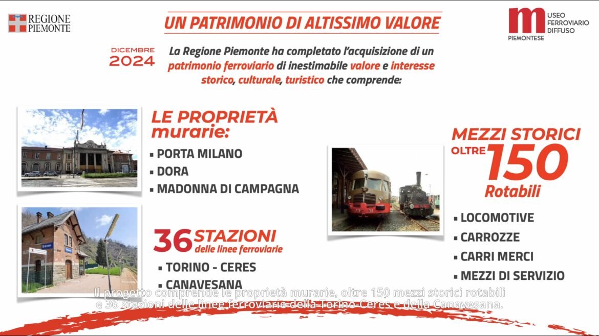 La Regione Piemonte ha deciso di creare un Museo diffuso del patrimonio ferroviario, di cui faranno parte oltre 150 mezzi storici rotabili e 36 stazioni delle linee ferroviarie Torino-Ceres e Canavesana.