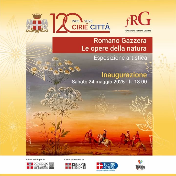La Città di Cirié dà il via alle iniziative organizzate per celebrare i #120anni dell’intitolazione a Città il prossimo 𝐬𝐚𝐛𝐚𝐭𝐨 𝟐𝟒 𝐦𝐚𝐠𝐠𝐢𝐨, 𝐚𝐥𝐥𝐞 𝐨𝐫𝐞 𝟏𝟖.𝟎𝟎, 𝐜𝐨𝐧 𝐥’𝐢𝐧𝐚𝐮𝐠𝐮𝐫𝐚𝐳𝐢𝐨𝐧𝐞 𝐝𝐞𝐥𝐥𝐚 𝐦𝐨𝐬𝐭𝐫𝐚 “𝐑𝐨𝐦𝐚𝐧𝐨 𝐆𝐚𝐳𝐳𝐞𝐫𝐚. 𝐋𝐞 𝐨𝐩𝐞𝐫𝐞 𝐝𝐞𝐥𝐥𝐚 𝐧𝐚𝐭𝐮𝐫𝐚” 𝐚𝐥𝐥𝐞𝐬𝐭𝐢𝐭𝐚 𝐚 𝐏𝐚𝐥𝐚𝐳𝐳𝐨 𝐃’𝐎𝐫𝐢𝐚, 𝐢𝐧 𝐂𝐨𝐫𝐬𝐨 𝐌𝐚𝐫𝐭𝐢𝐫𝐢 𝐝𝐞𝐥𝐥𝐚 𝐋𝐢𝐛𝐞𝐫𝐭𝐚̀ 𝟑𝟑.