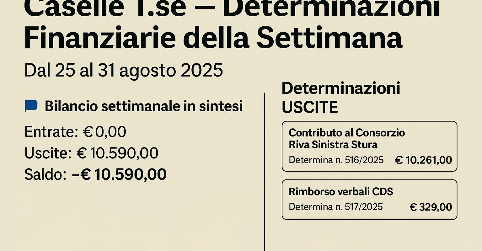 Settimana 35: zero incassi, 10.590 € di uscite per Caselle