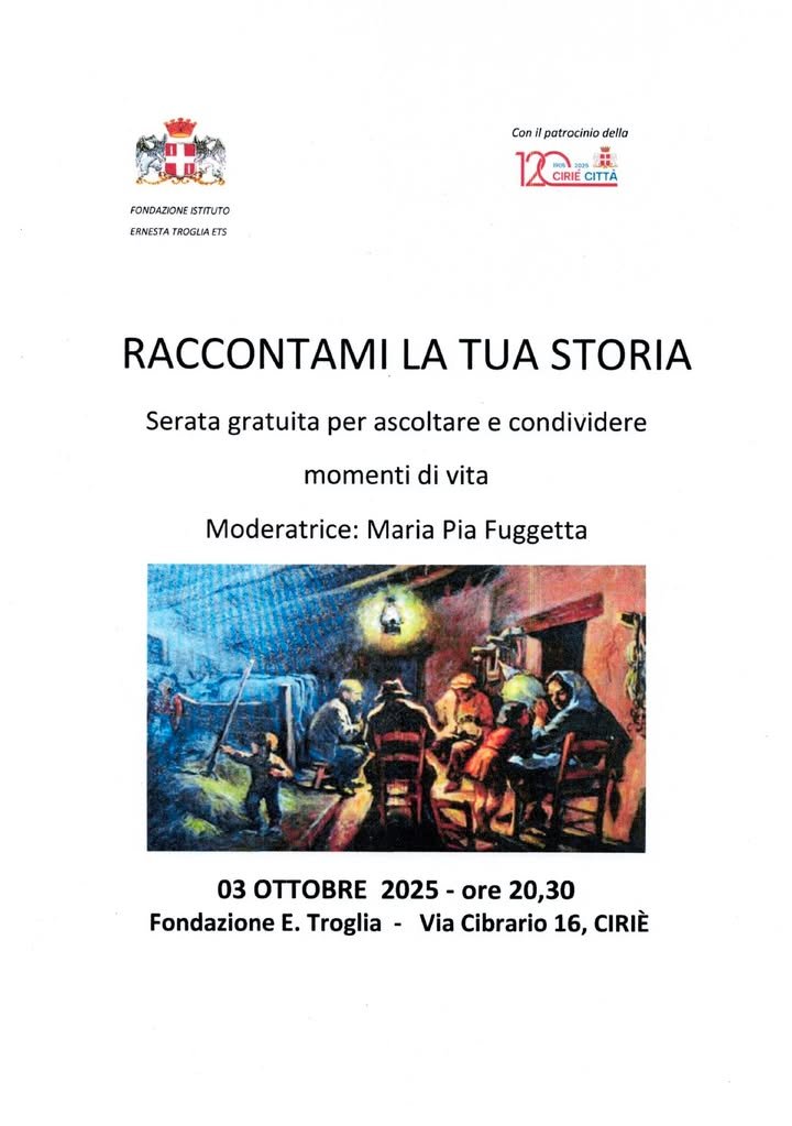 🎙️ L’Istituto Fondazione Ernesta Troglia ospiterà 🗓️ venerdì 3 ottobre, alle ore 20.30, una serata dal titolo 🖊️ “Raccontami la tua storia”.