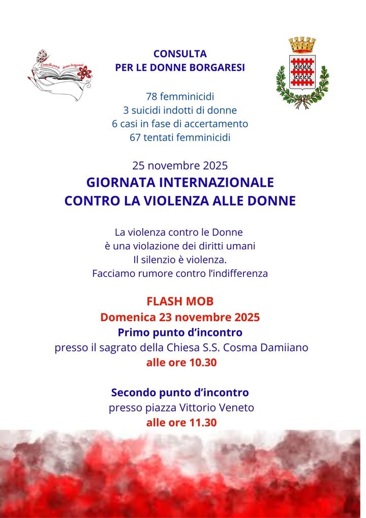 La Consulta per le Donne Borgaresi, invita tutta la cittadinanza a partecipare ai momenti di sensibilizzazione e approfondimento organizzati in occasione del 25 novembre – Giornata internazionale per l’eliminazione della violenza contro le donne.