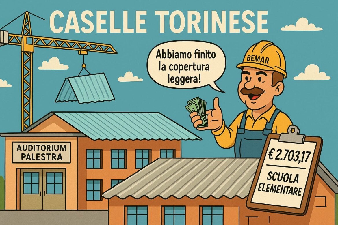Quando si dice “coprirsi per l’inverno”, il Comune di Caselle lo prende sul serio. Dopo mesi di lavori, collaudi, subappalti e sigle misteriose (CIG, CUP e compagnia bella), finalmente l’auditorium e la palestra della scuola Rodari possono vantare un nuovo tetto leggero. Più leggero, ma non certo economico.