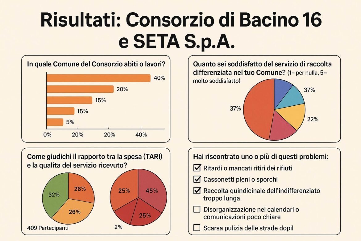 Perché dentro quei dati, dentro quelle percentuali, c’è il racconto più vero di una città e del suo rapporto con le istituzioni.Il sondaggio sul servizio rifiuti del Consorzio di Bacino 16 e SETA S.p.A. ne è un esempio concreto: 409 cittadini che non si sono limitati a lamentarsi, ma hanno scelto di partecipare.