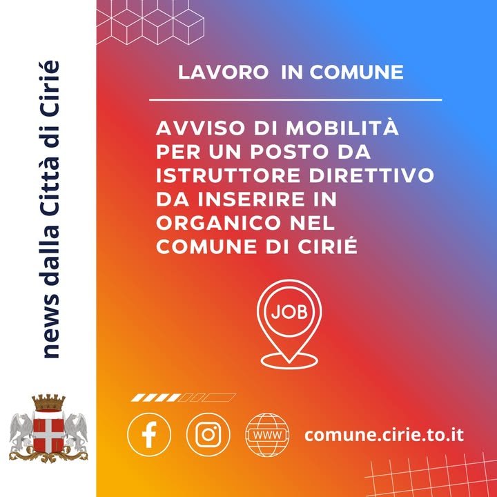 ‼️ C’è tempo fino al 29 dicembre 2025 (fino alle alle 23.59) per rispondere all’#avvisopubblico del #Comune di Cirié di #mobilitàvolontaria per la copertura di un posto di “specialista in attività amministrativo-contabili (istruttore direttivo)” per l’area dei funzionari, settore servizi interni e di staff, a tempo indeterminato e pieno, mediante passaggio diretto di personale appartenente alla stessa area e profilo professionale (art. 30 del d.lgs. 30 marzo 2001, n. 165).