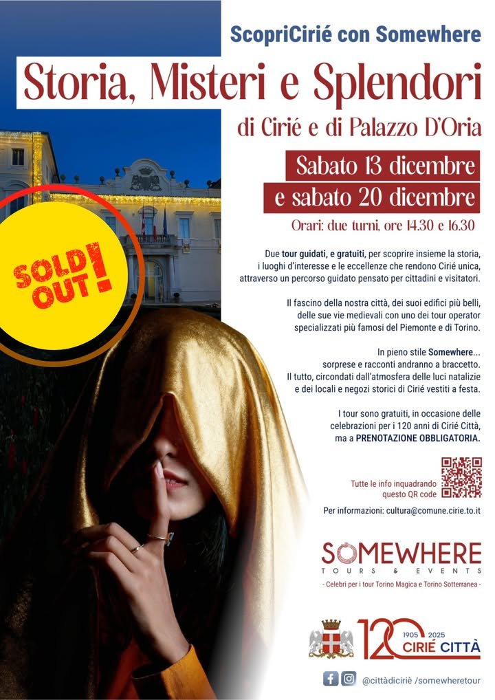 💫 Sono #soldout i tour “ScopriCirié con Somewhere – Storia, misteri e splendori di Cirié e di Palazzo D’Oria” che il Comune ha organizzato insieme al tour operator #Somewhere (celebre ad esempio per le proposte ® Torino Magica e ® Torino Sotterranea) per ⭕ sabato 13 dicembre e ⭕ sabato 20 dicembre.