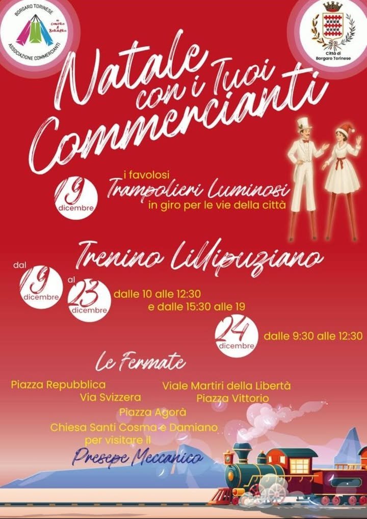 Da Venerdì19 dicembre il Natale a Borgaro si vive per le strade, tra luci, sorrisi e tradizione: arrivano in città i favolosi trampolieri luminosi, pronti a stupire grandi e piccoli passeggiando tra le vie cittadine.