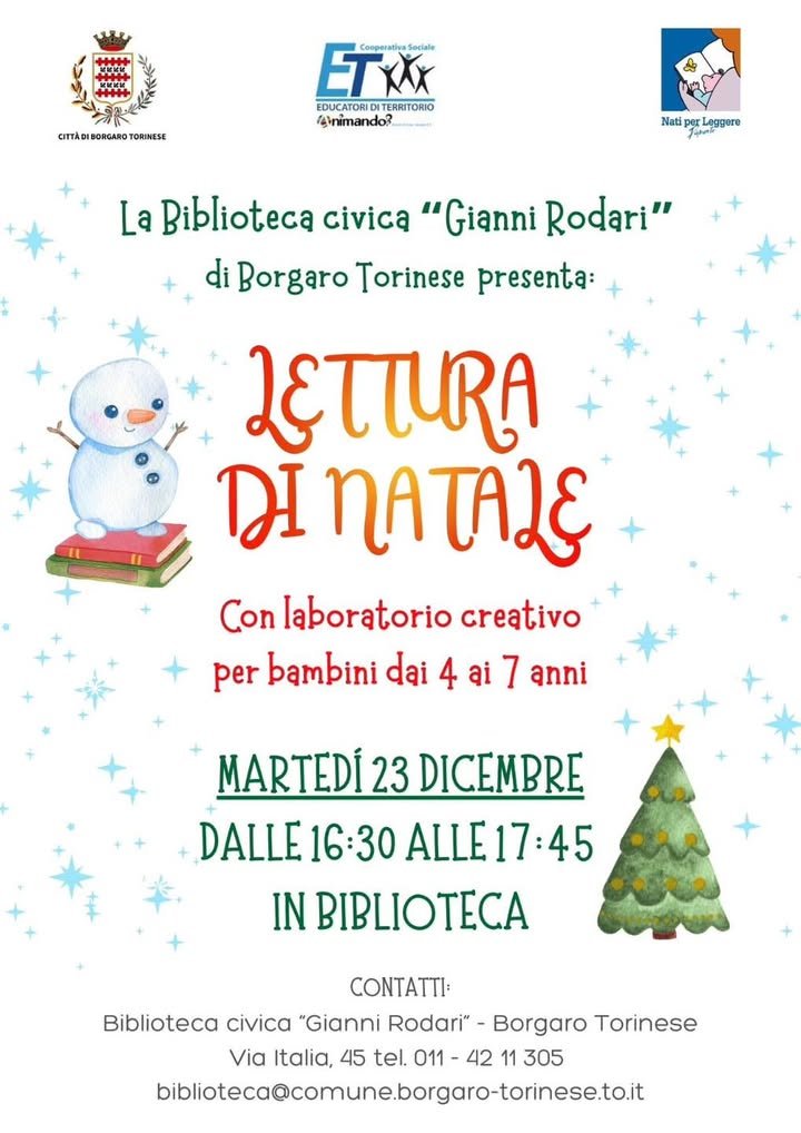 La Biblioteca civica “Gianni Rodari” di Borgaro invita bambine e bambini a un pomeriggio speciale all’insegna delle storie, della creatività e della magia del Natale 🎄