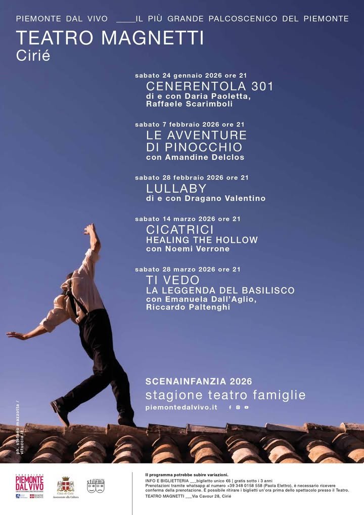 Inizia a fine gennaio #Scenainfanzia, la Stagione Teatrale per ragazzi e #famiglie della Cittร di Ciriรฉ, realizzata in collaborazione con la Fondazione Piemonte dal Vivo e con la Compagnia Teatrale Stilema