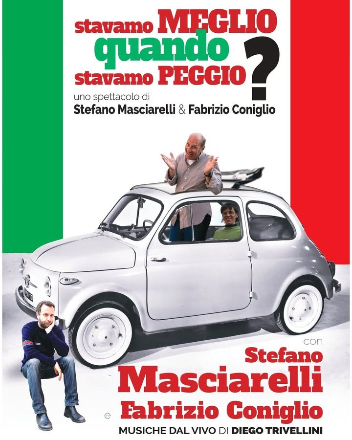 Attraverso il racconto ironico e nostalgico di usanze, modi di parlare, vengono ripercorsi gli anni โ60 e โ70 grazie a Stefano Masciarelli, attore poliedrico e cantante, che regalerร una serata intensa di ricordi e canzoni partendo da Alberto Sordi, per passare a Domenico Modugno e a tanti altri cantanti e successi di quellโItalia del sorriso e del sogno, con arrangiamenti rivisitati e suonati dal vivo dal maestro Francesco Digilio.
