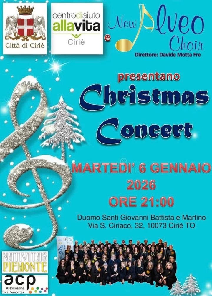 📢🎼🎹 Ricordiamo che il New Alveo Choir e il Centro Aiuto alla Vita di Cirié porteranno questa sera, martedì 6 gennaio, nel Duomo di San Giovanni il 🎤”Christmas Concert”.