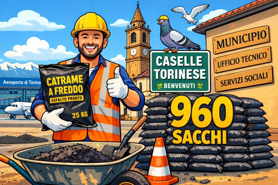 Determinazione n. 41 – Caselle dichiara guerra alle buche. Ordina 960 sacchi da 25 kg di asfalto freddo per un totale di 24.000 kg, affidati alla TECNI.CO Edilizia di Torino. Costo complessivo: 10.473,46 €.