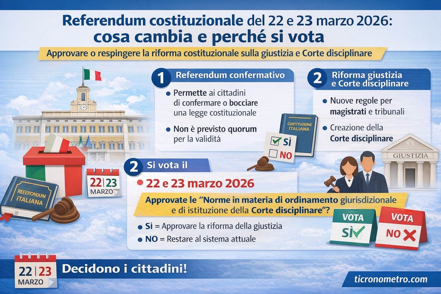 Referendum costituzionale del 22 e 23 marzo 2026: cosa cambia e perché si vota