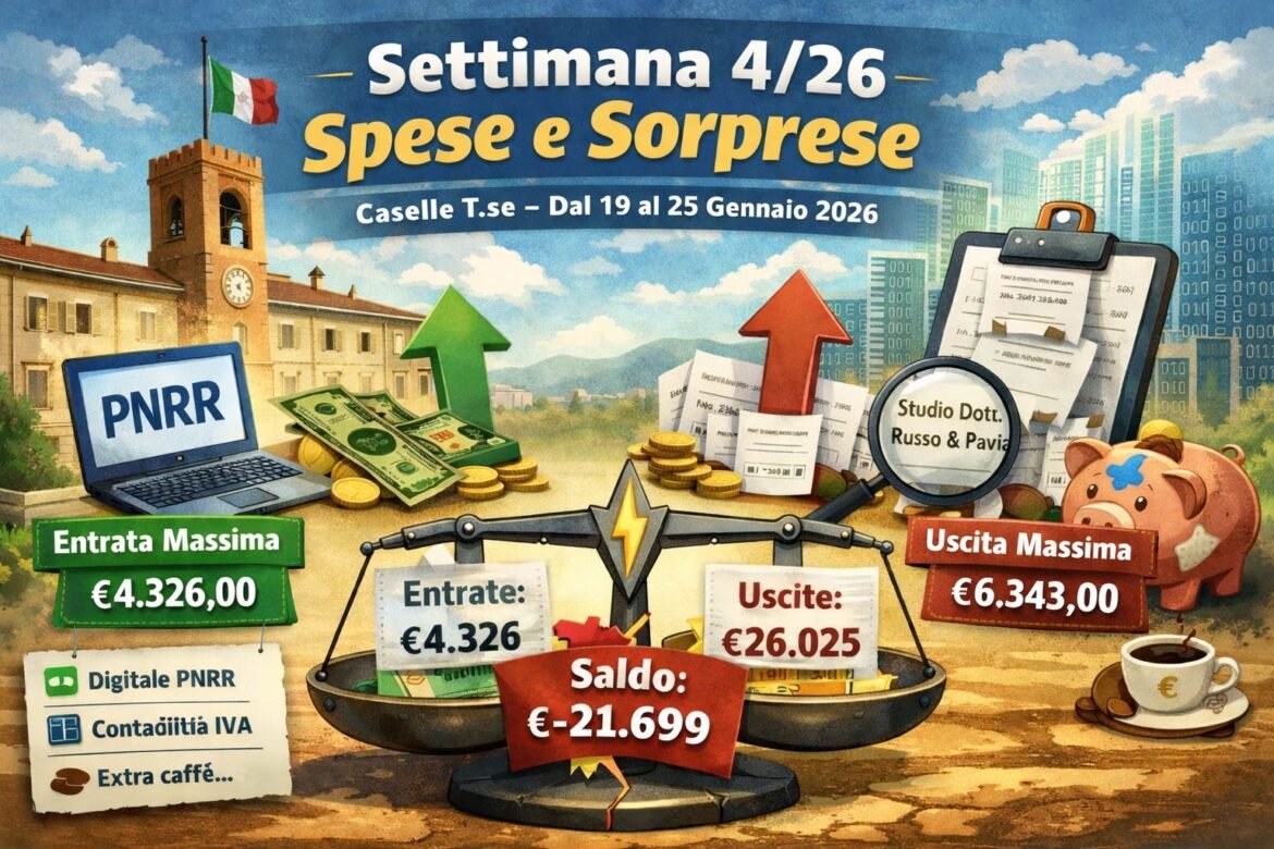 Dopo la settimana “monotematica” dell’IVA, la settimana dal 19 al 25 gennaio 2026 torna a una dimensione più concreta e frammentata: una sola entrata, legata al PNRR, e una lunga teoria di uscite, molte delle quali riconducibili all’economato.