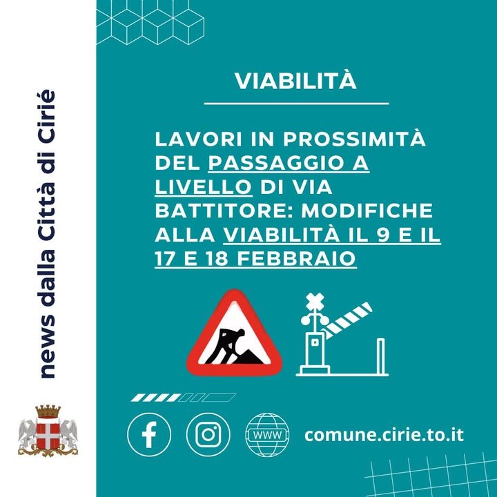👉 Per consentire i lavori di manutenzione sul collettore fognario da parte di #SMAT, con Ordinanza n.35/2026 sono state introdotte alcune modifiche alla viabilità in 📌 via Battitore, in prossimità della #rotatoria – dove verrà istituita un’area di cantiere con ✅ impianto semaforico o movieri – e nel tratto compreso tra via Mazzini e il civico n. 15, dove verrà istituito il ✅ divieto di sosta con rimozione forzata.