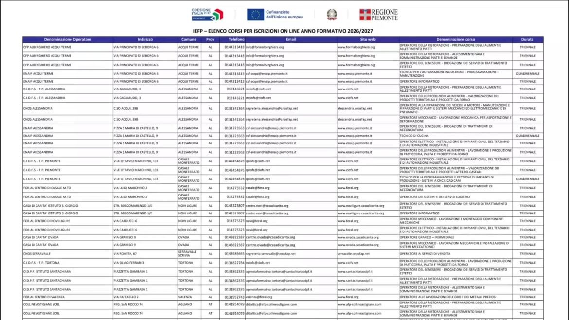 “Finestra sul #Piemonte”: 251 #corsi gratuiti approvati dalla Regione per l’anno formativo 2026-2027 permetteranno a circa 5.000 #giovani in uscita dalla scuola media di assolvere il diritto-dovere all’#istruzione e alla #formazioneprofessionale e di acquisire una qualifica o un diploma professionale che permetta di rispondere a molte competenze richieste dalle #imprese.