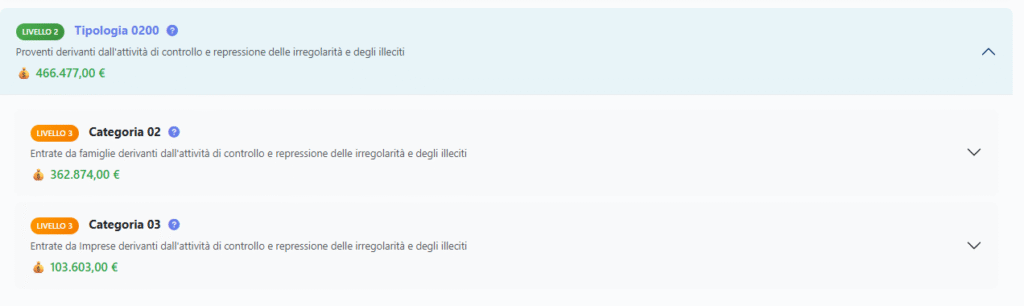 Categoria 02 = Entrate da famiglie derivanti dall’attività di controllo e repressione delle irregolarità e