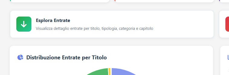 qui avete una dashboard con dei dati complessivi (prendeteli non con oro colato) sono cifre prese in automatico dagli atti pubblicati prendetelo come un buon esercizio per cercare di capire come funziona il tutto. cliccate sul bottone Esplora Entrate