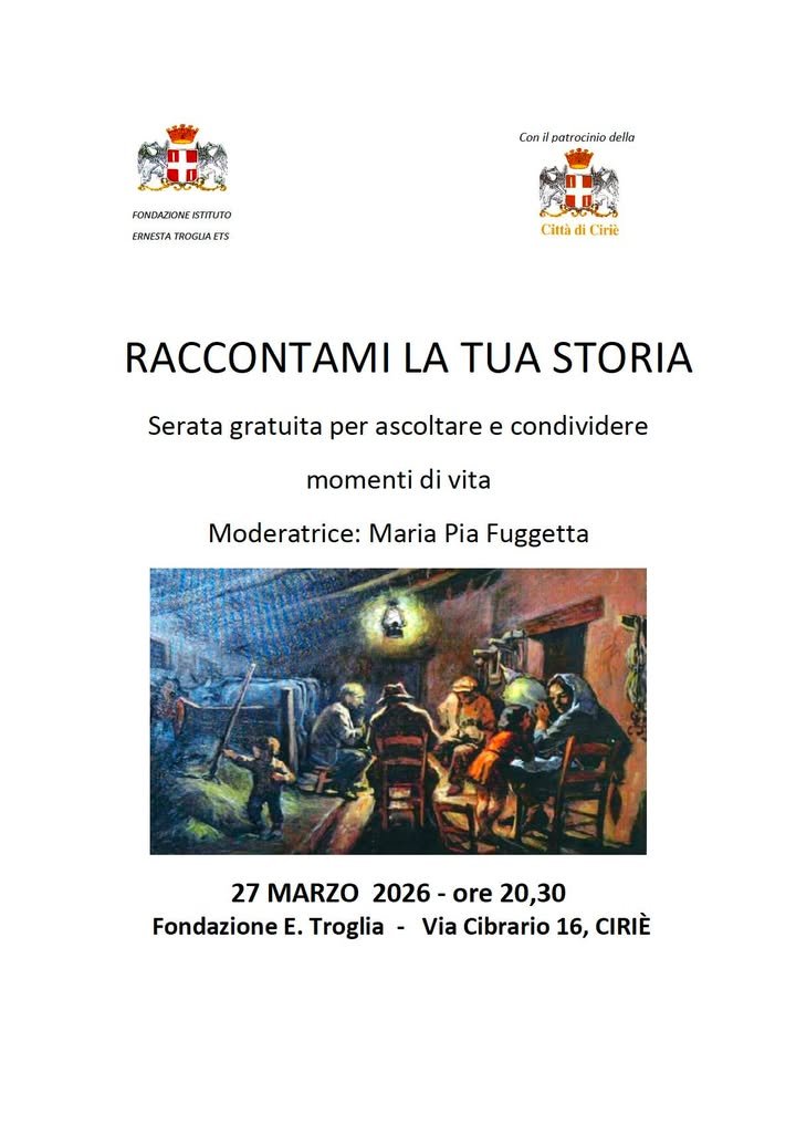 Il prossimo incontro โ organizzato dalla Fondazione Istituto Ernesta Troglia con il patrocinio della Cittร di Ciriรจ โ รจ previsto per venerdรฌ 27 marzo e avrร inizio alle โฐ ore 20.30 nelle sale dellโIstituto Troglia ๐ in via Cibrario 14.