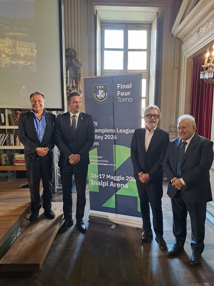 📍 Al Circolo dei lettori di Torino si è tenuta la conferenza stampa di presentazione della Final Four della CEV Champions League maschile 2026, alla presenza dell’assessore regionale allo Sport, Paolo Bongioanni, dell’assessore allo Sport della Città di Torino, Domenico Carretta, del presidente CEV, Roko Sikiric, e del presidente FIPAV, Giuseppe Manfredi.