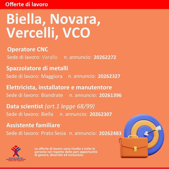 Nelle province di Novara, Vercelli e Biella sono aperte le posizioni per i ruoli di: