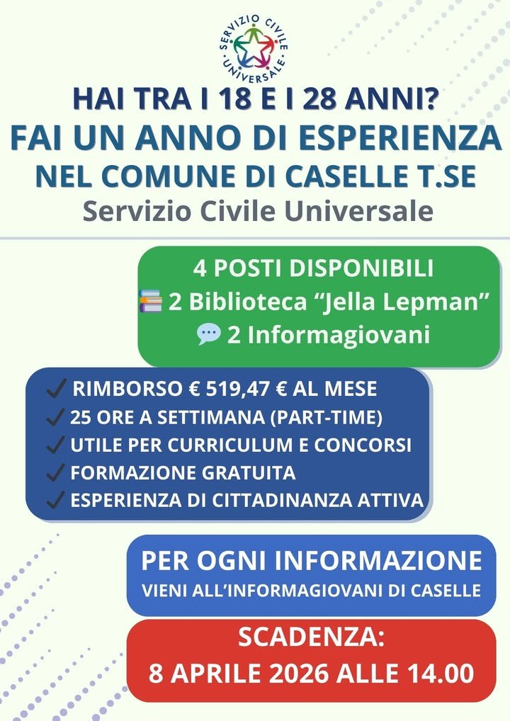 InformaGiovani Caselle A.A.A. ⚠️⚠️ Scadenza prorogata al 16 aprile alle 14.00‼ by from WEB 10 Aprile 2026 written by from WEB 10 Aprile 2026 0 A.A.A. ⚠️⚠️ Scadenza prorogata al 16 aprile alle 14.00‼ Read More 0 comment 0 FacebookTwitterPinterestEmail from WEB previous post Ancora in crescita il turismo in Piemonte. Lo dicono i dati elaborati… Related Articles VALE: Vivere, Apprendere e Lavorare in Europa 4... 7 Aprile 2026 ⚠️⚠️Non ti sei ancora iscritto❓ Hai tempo fino... 7 Aprile 2026 Hai bisogno di informazioni e supporto? È attivo... 1 Aprile 2026 📌𝗜𝗡𝗙𝗢𝗥𝗠𝗔 𝗗𝗜𝗦𝗔𝗕𝗜𝗟𝗜𝗧𝗔̀ 𝗰𝗼𝗻𝘀𝗶𝗴𝗹𝗶𝗮: ‼𝐅𝐄𝐒𝐓𝐈𝐕𝐀𝐋 𝐃𝐄𝐋𝐋𝐀 𝐕𝐈𝐓𝐀 𝐈𝐍𝐃𝐈𝐏𝐄𝐍𝐃𝐄𝐍𝐓𝐄‼ 𝐷𝑎𝑙... 30 Marzo 2026 ‼𝐎𝐍𝐋𝐈𝐍𝐄 𝐑𝐀𝐒𝐒𝐄𝐆𝐍𝐀 𝐃𝐄𝐋𝐋𝐄 𝐎𝐅𝐅𝐄𝐑𝐓𝐄 𝐃𝐈 𝐋𝐀𝐕𝐎𝐑𝐎, 𝐂𝐎𝐑𝐒𝐈 𝐄... 26 Marzo 2026 ✨ 𝑰𝙡 𝙎𝒆𝙧𝒗𝙞𝒛𝙞𝒐 𝑪𝙞𝒗𝙞𝒍𝙚 𝙐𝒏𝙞𝒗𝙚𝒓𝙨𝒂𝙡𝒆 𝒆̀ 𝒑𝙖𝒓𝙩𝒆𝙘𝒊𝙥𝒂𝙯𝒊𝙤𝒏𝙚, 𝒄𝙤𝒎𝙪𝒏𝙞𝒕𝙖̀... 26 Marzo 2026 📌𝗜𝗡𝗙𝗢𝗥𝗠𝗔 𝗗𝗜𝗦𝗔𝗕𝗜𝗟𝗜𝗧𝗔̀ 𝗰𝗼𝗻𝘀𝗶𝗴𝗹𝗶𝗮 🌍 𝐃𝐈𝐕𝐄𝐑𝐒𝐈𝐓𝐘 𝐃𝐀𝐘 𝐓𝐎𝐑𝐈𝐍𝐎 𝑆𝑒𝑖... 23 Marzo 2026 Anche l’informagiovani di Caselle questa mattina al corteo... 21 Marzo 2026 ‼𝐎𝐍𝐋𝐈𝐍𝐄 𝐑𝐀𝐒𝐒𝐄𝐆𝐍𝐀 𝐃𝐄𝐋𝐋𝐄 𝐎𝐅𝐅𝐄𝐑𝐓𝐄 𝐃𝐈 𝐋𝐀𝐕𝐎𝐑𝐎, 𝐂𝐎𝐑𝐒𝐈 𝐄... 12 Marzo 2026 📌𝗜𝗡𝗙𝗢𝗥𝗠𝗔 𝗗𝗜𝗦𝗔𝗕𝗜𝗟𝗜𝗧𝗔̀ 𝗰𝗼𝗻𝘀𝗶𝗴𝗹𝗶𝗮 📢 𝐂𝐨𝐫𝐬𝐨 𝐠𝐫𝐚𝐭𝐮𝐢𝐭𝐨: 𝐅𝐎𝐑𝐌𝐀𝐙𝐈𝐎𝐍𝐄 𝐈𝐍... 9 Marzo 2026