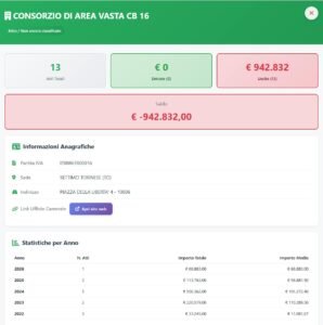 Il soggetto coinvolto è il Consorzio di Area Vasta CB16, con sede legale in Piazza della Libertà 4, Settimo Torinese, P. IVA/C.F. 08867800016. Non è indicato un CIG, perché nell’atto è specificato che per questa spesa il CIG non è richiesto. È presente invece la verifica della regolarità contributiva DURC, con scadenza 13/06/2026.
